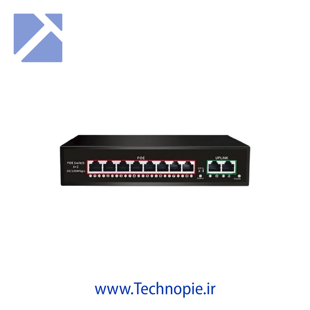تعداد پورتها: این محصول دارای ۸ پورت PoE برای انتقال داده و تأمین برق دستگاهها می باشد و ۲ پورت Uplink برای اتصال به شبکه اصلی یا دستگاههای دیگر.